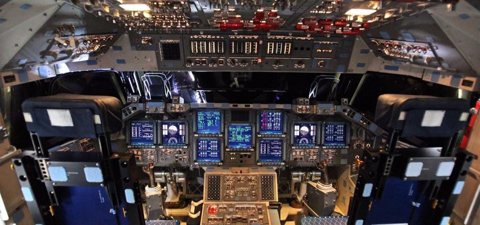 Comparison of the controls between a NASA spaceship vs SpaceX spaceship. Of course, software and touchscreens abstract away unnecessary controls until required.