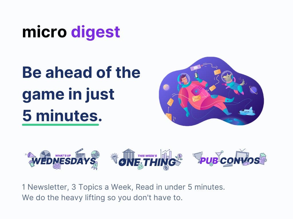 A curated micro-newsletter covering business, side hustle ideas, tech and history that you can read in under 5 minutes or less, 3 days a week for FREE. We do the heavy lifting so you don't have to. Check it out here.