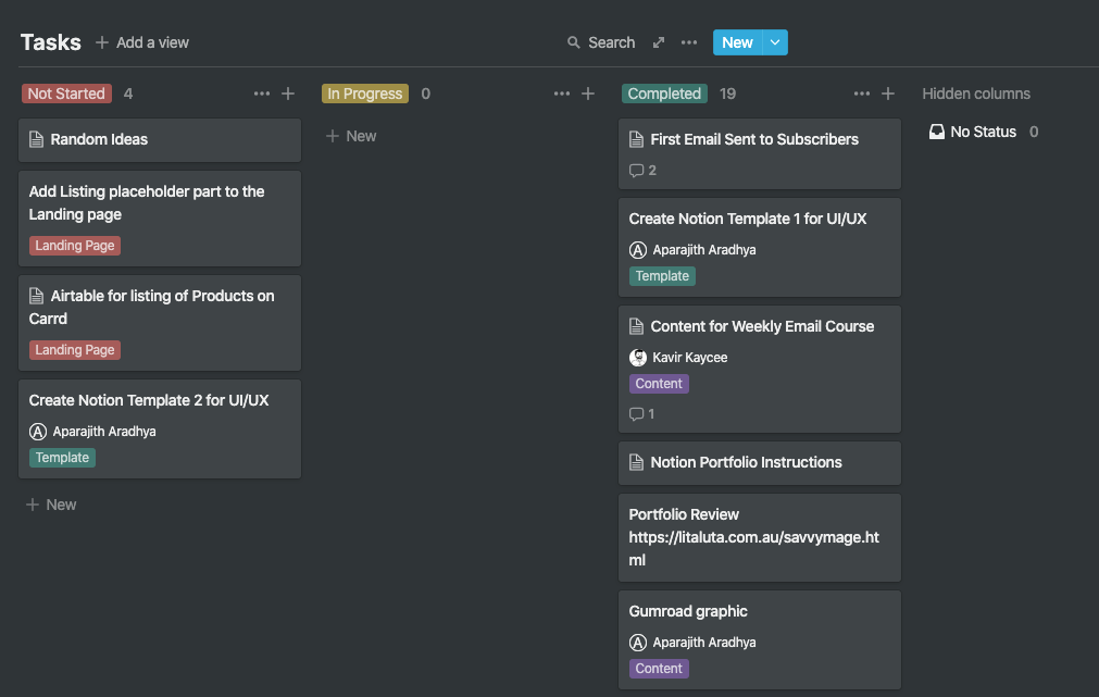 When collaborating with one or more people, it is important to break down and divide tasks between the team. Notion worked seamlessly to enable this collaboration.